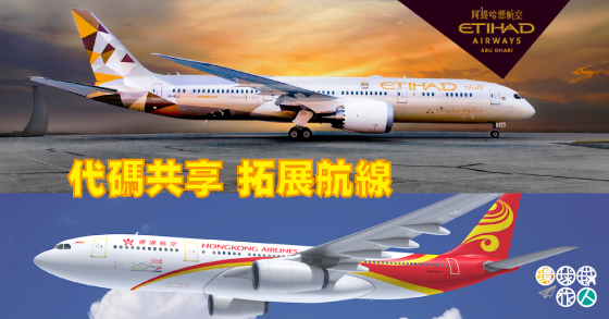 香港航空與阿提哈德航空代碼共享,強化歐洲及新西蘭航線!