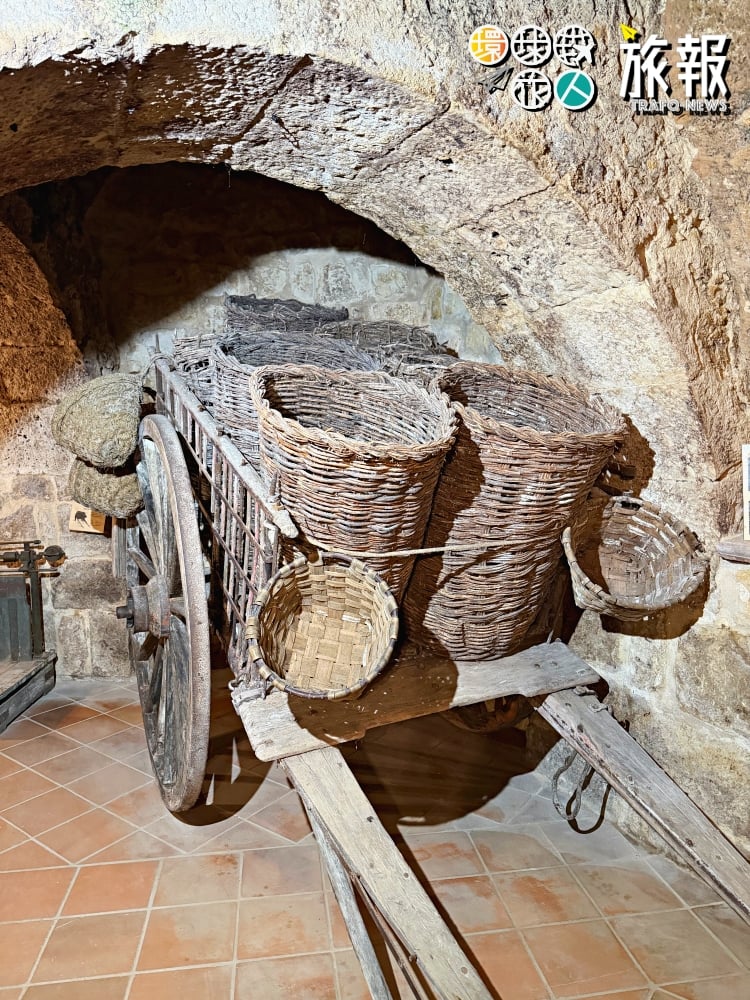酒窖牆面可見手鑿痕跡,通風井(zarceras)垂直通往地面,負責調節空氣流動;部分酒窖仍保留原始石槽與橡木桶位置。導覽員解釋,這些空間不僅用於釀酒與儲藏,也是一種「保險」-在戰亂或歉收年代,地下酒窖意味著一整個家族的生存保障。